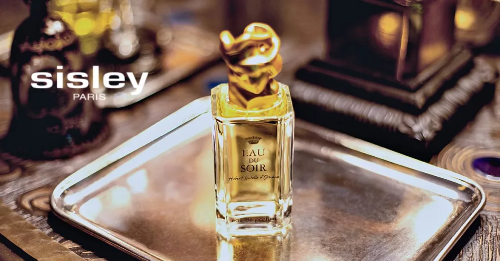 Con su frasco coronado por un tapón dorado, Eau du Soir de Sisley encarna el lujo francés y el encanto de los grandes perfumes clásicos.